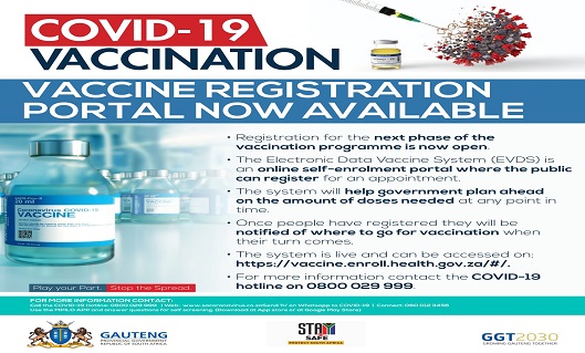 3. Connect to the internet and go to vaccine.enroll.health.gov.za. The welcome screen will guide you through the steps .